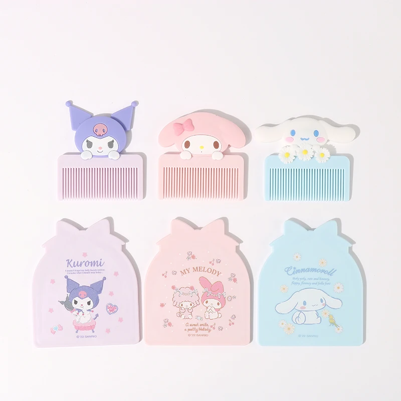 Мультяшное Sanrioed Kuromi Mymelody Kawaii Mini зеркало и Расчёска в комплекте Ins Girl Heart Cinnamoroll портативный Abs портативное косметическое зеркало в подарок