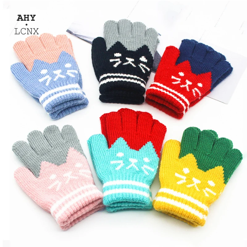 Мультяшные вязаные перчатки, варежки для детей, зимние перчатки для детей, Зимние перчатки для детей, варежки с пальцами для маленьких мальч...