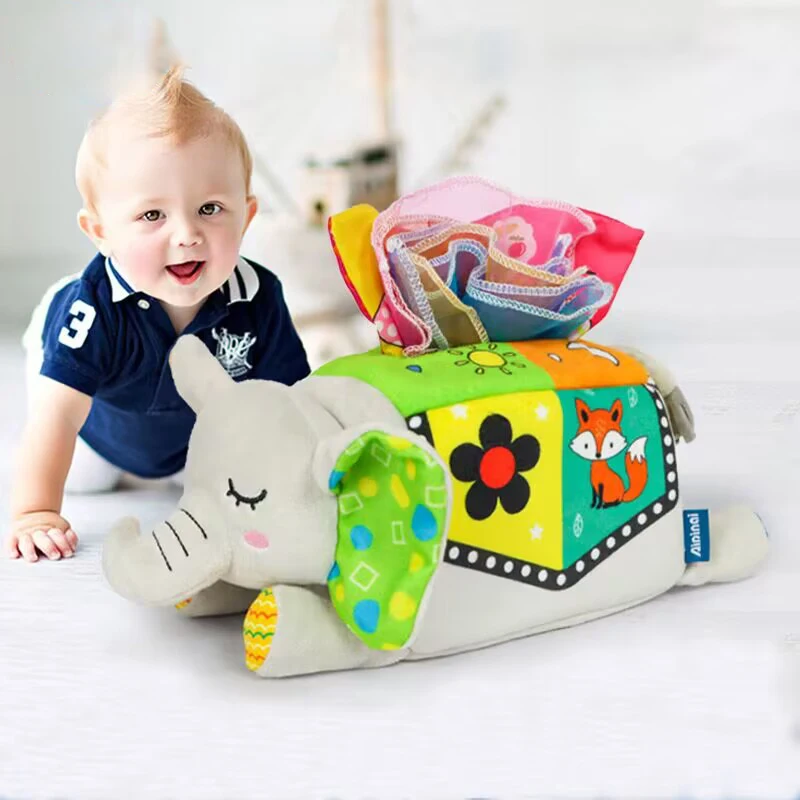 Мультяшные животные, детская коробка для салфеток, игрушки для детей от 0 до 12 месяцев, развивающие сенсорные игрушки для мальчиков и девочек, игры Монтессори для детей