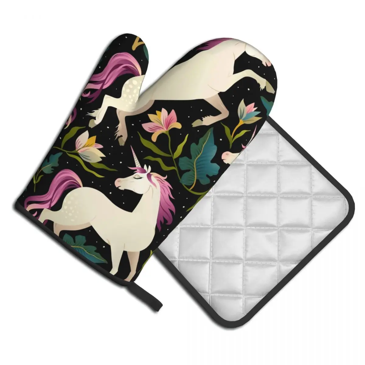 Мультяшные кухонные перчатки с цветочным принтом, термостойкие, горячая модель, держатель для горшка, набор перчаток для барбекю, пекарни