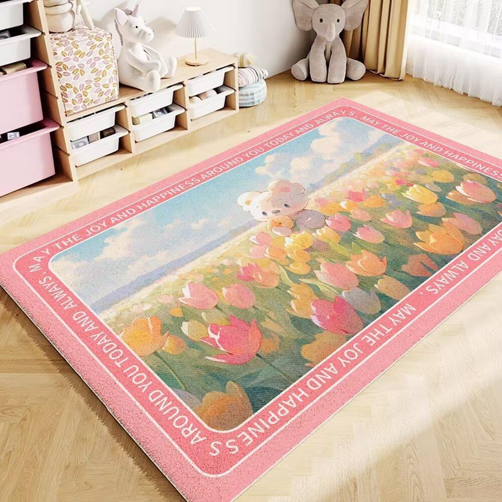 Мультяшный имитация кашемира, за которым легко ухаживать, нескользящий, быстросохнущий ковер, износостойкий коврик, впитывающий грязь, домашнее одеяло для спальни 140*200CM