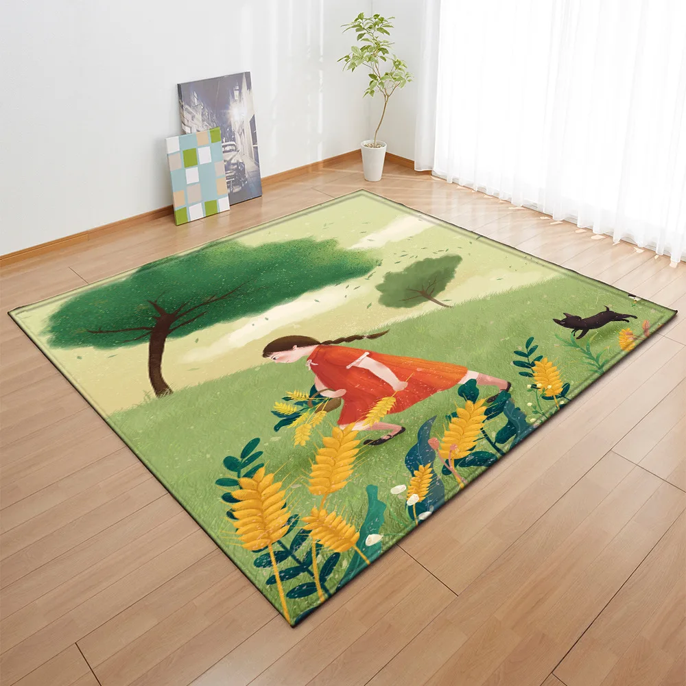 Мультяшный ковер для девушек с простым рисунком, художественный ковер для гостиной, аксессуары для мебели, коврик для спальни, гостиной, декоративный фетровый ковер