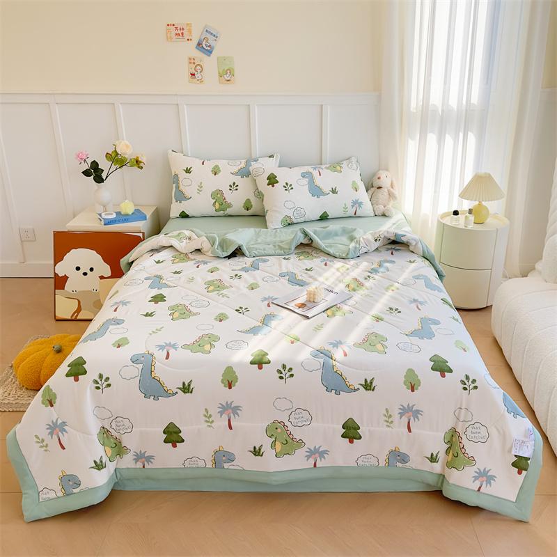 Мультяшный медведь с шахматным узором летнее одеяло, приятное для кожи, удобное хлопковое одеяло с кондиционером для детей, мальчиков и девочек 150x200cm Single 1Pc