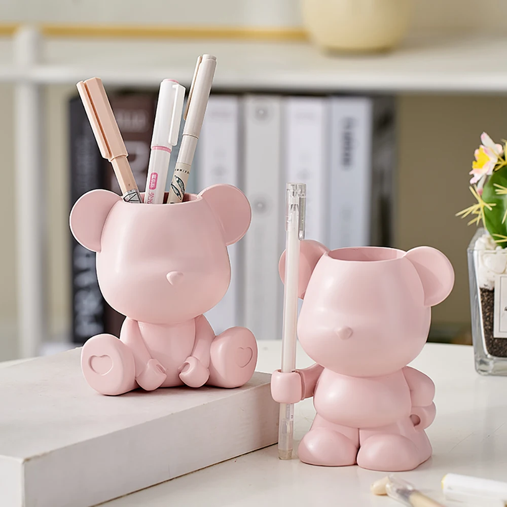 Мультяшный многофункциональный держатель для ручек с милым медведем, многофункциональный держатель для ручек с сердцем для девочек, студенческие офисные канцелярские принадлежности