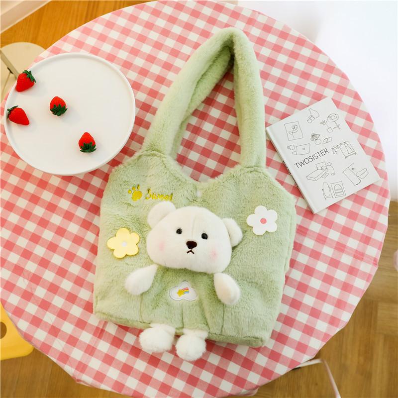 Мультяшный плюшевый медведь милая меховая сумка большая вместимость сумка через плечо зимняя повседневная ленивая сумка-мессенджер для девушки 30cm*35cm(0.28kg) зелёный