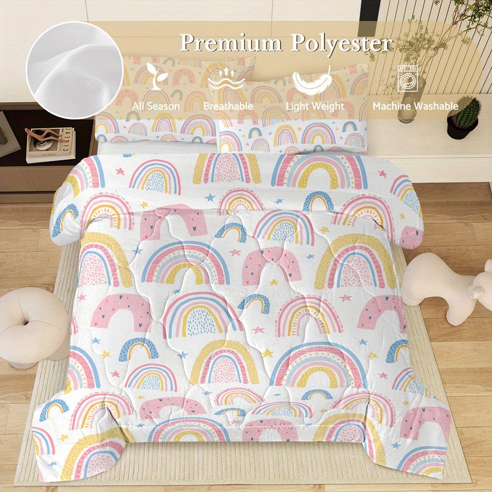 Мультяшный постельный комплект Радужный 3D-принт Набор из 2-3 предметов (Без наполнения) Комплект пододеяльника Домашний декор Текстиль Милые подарки для детей девочек Eusingle 135x200cm