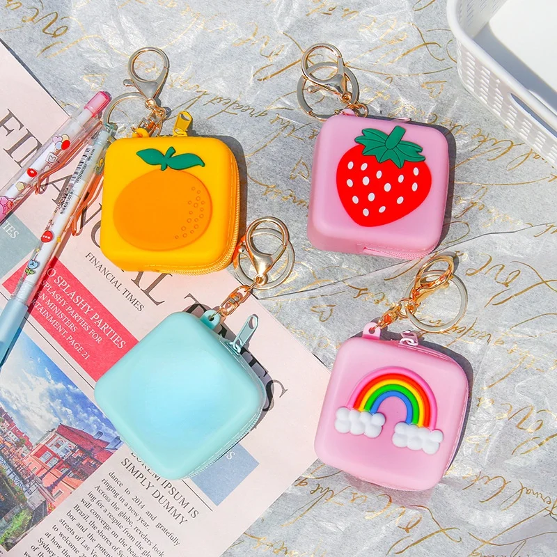 Мультяшный силиконовый милый кошелек для монет, Детский кошелек для денег, ключей, Женский мини-кошелек для девочек с USB-кабелем, гарнитурой ...