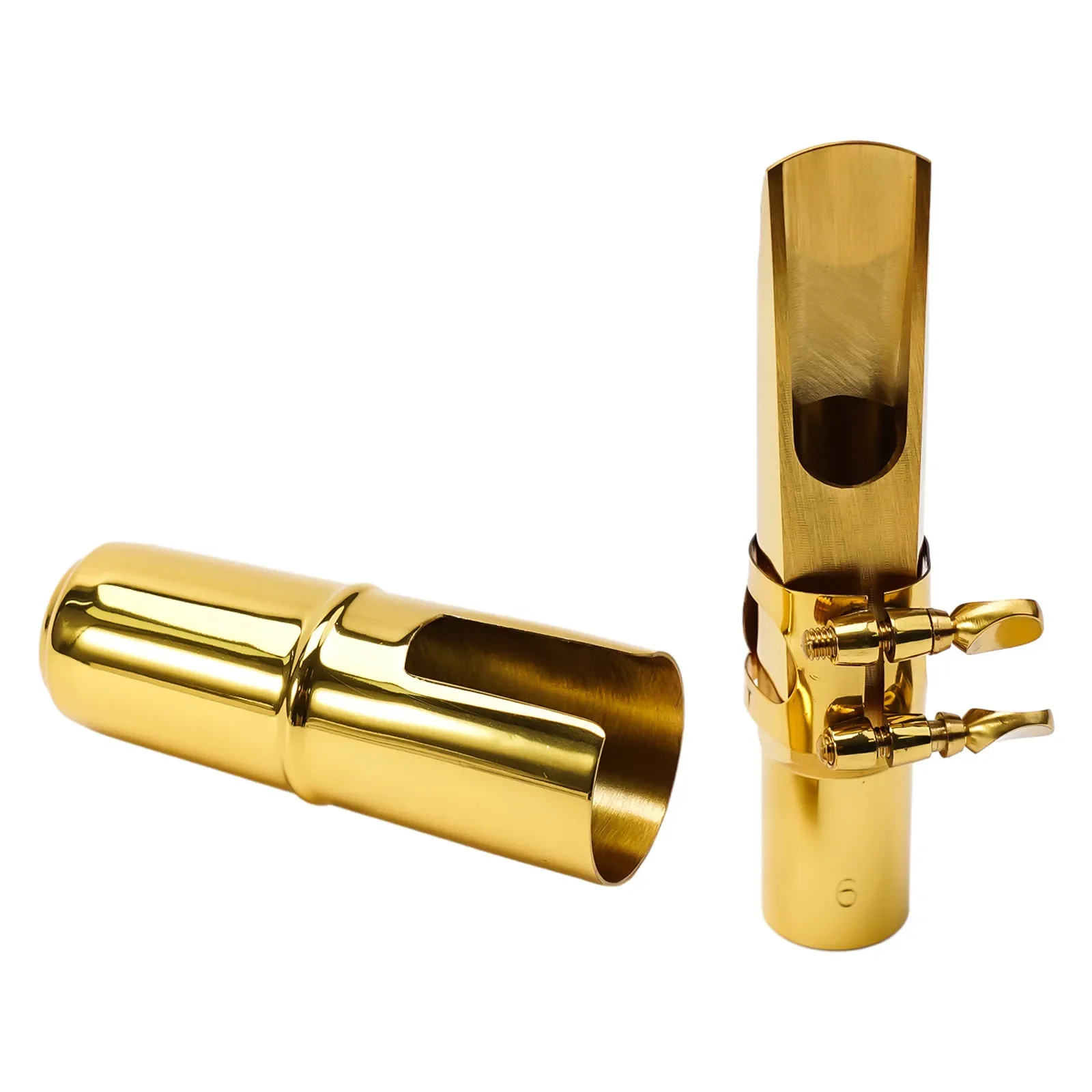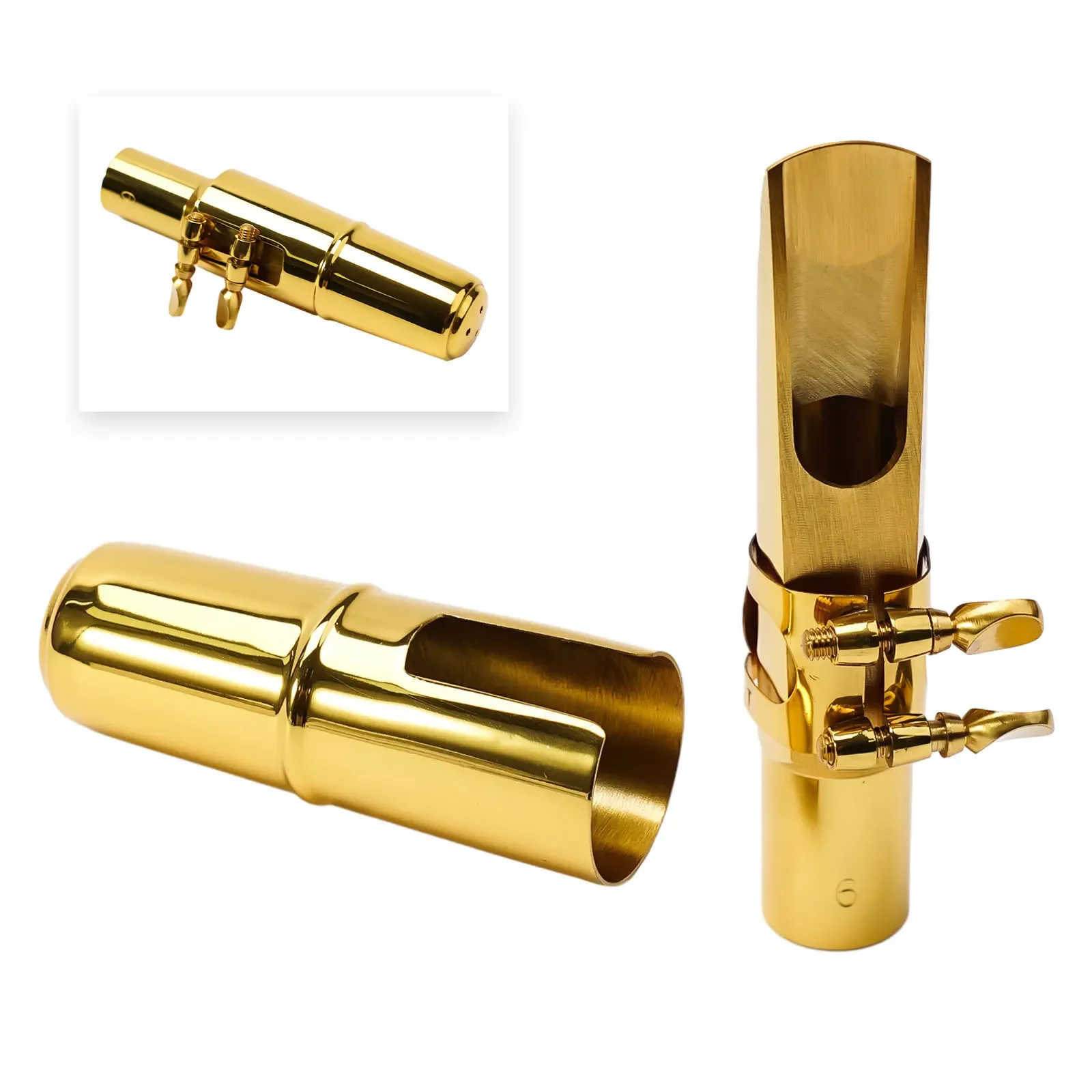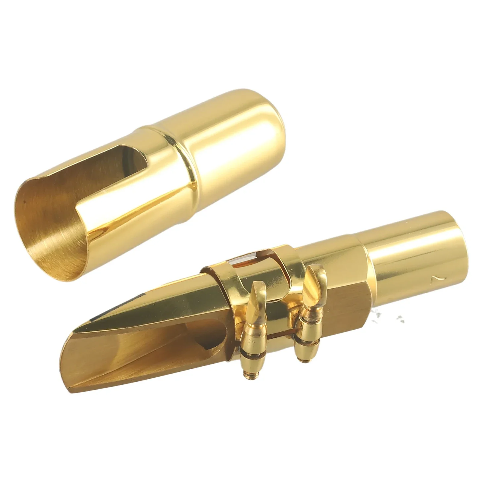 Мундштук для саксофона, стандартный металлический мини-мундштук, 1 шт, мундштук, около 4*4*10 см, Золотая Лигатура и крышка