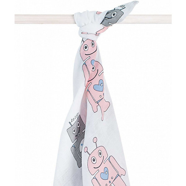 Муслиновая простынка-полотенце Jollein, розовые роботы, XL 140x200 см, Розовый/белый