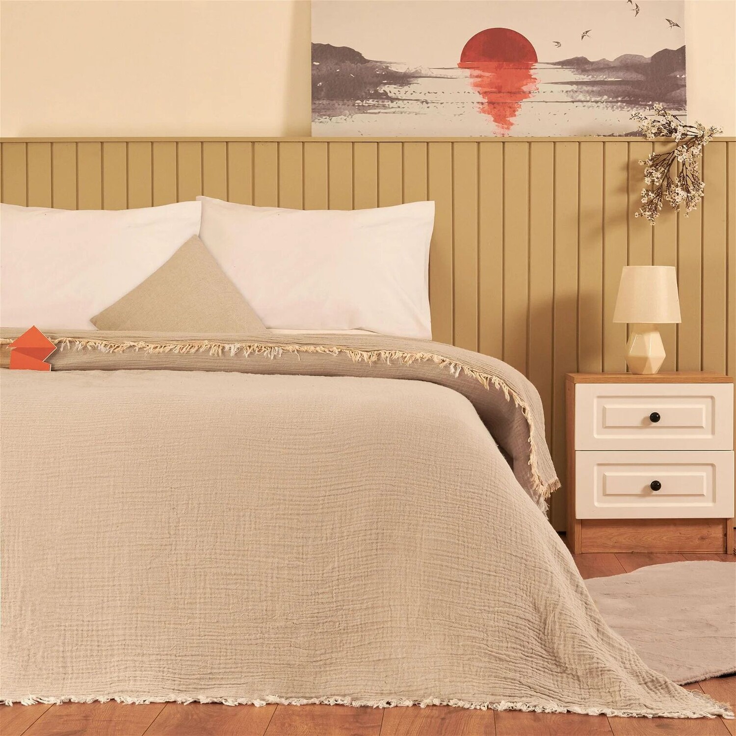Муслиновое покрывало Nuvomon для односпальной кровати бежевого цветаЦвет: бежевый