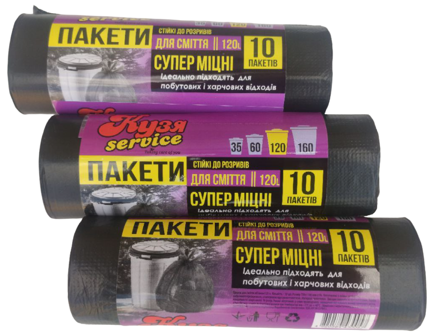 Мусорные пакеты прочные КУЗЯ SERVICE 120л (10 шт/уп)