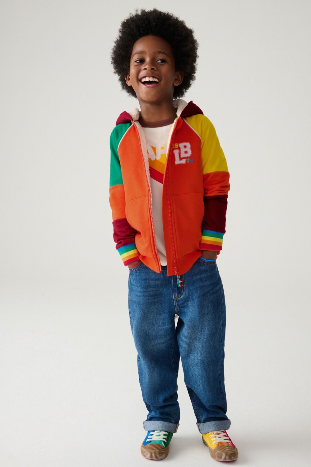 Толстовка с капюшоном из флиса «борг» с цветными блоками и застежкой молнией Little Bird By Jools Oliver, оранжевый