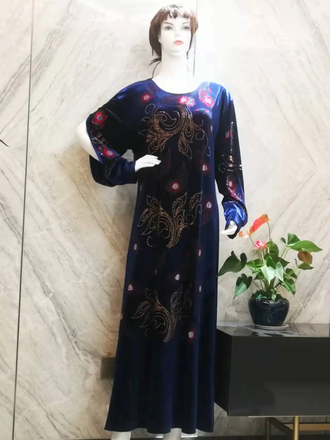Мусульманское арабское Африканское женское платье с ажурными рукавами, женское платье с цветными сияющими камнями в европейском и америка...