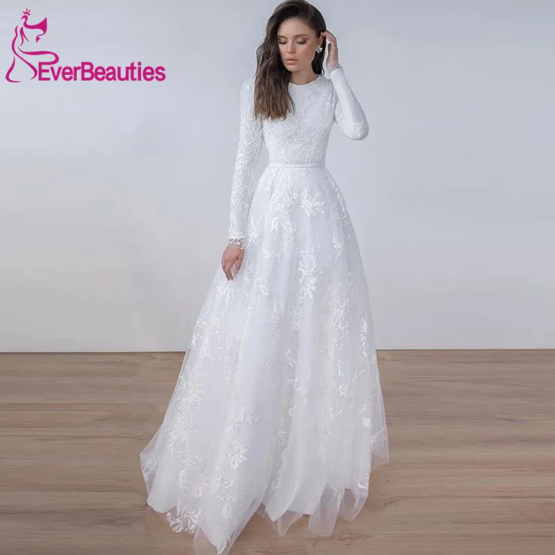 Мусульманское свадебное платье с длинным рукавом, трапециевидной формы