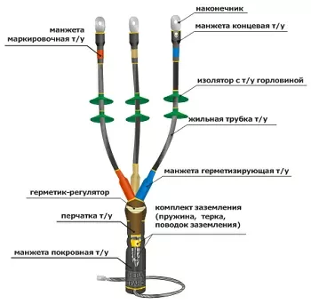 Муфта кабельная концевая 3 жилы 150 мм²-240 мм² термоусадка, от -50°С до +50°С, длина 22 см, КВТ 10КНТп-3х(150-240) (22020024), 10КНТп-3х(150-240)