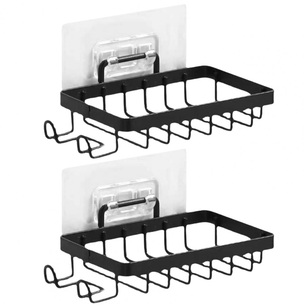 Мыльница из нержавеющей стали, современная мыльница, стильная мыльница из нержавеющей стали с боковыми крючками, настенный держатель для душа для мыла 1pc чёрный