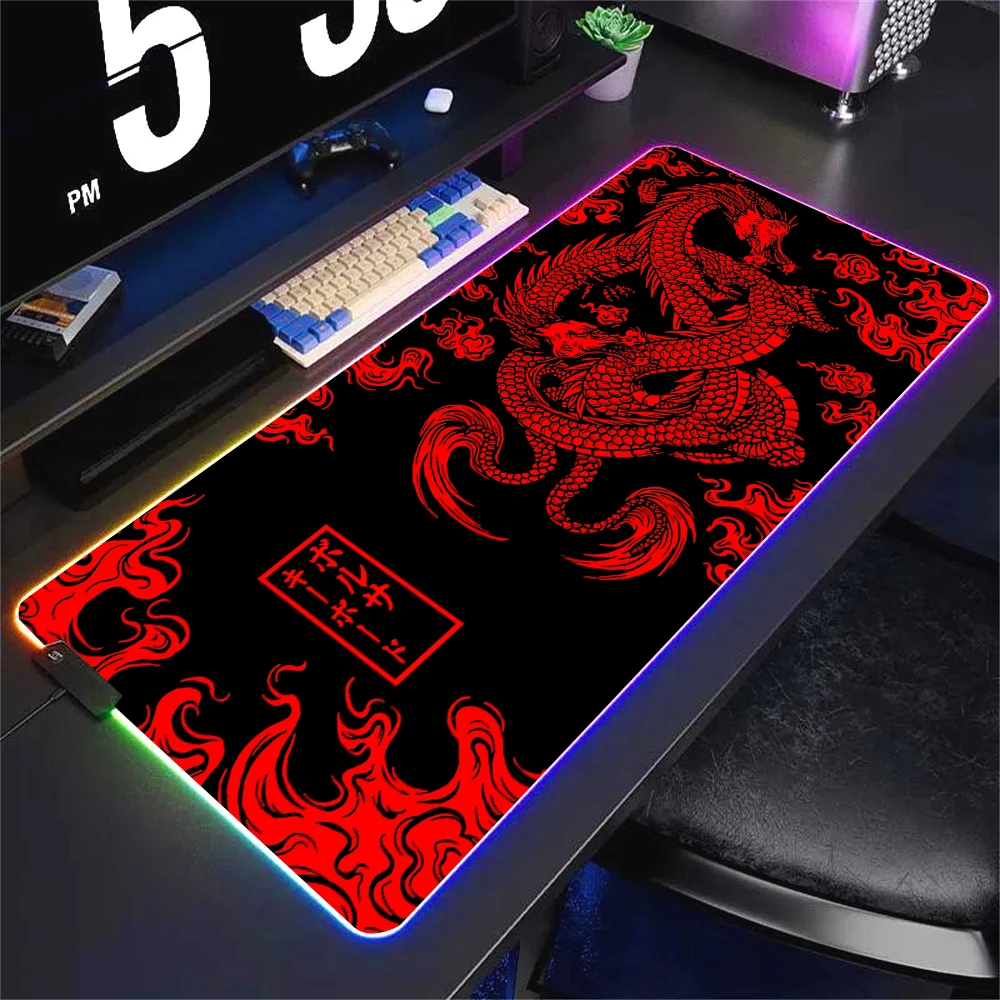 Мышь с подсветкой большие коврики для мыши RGB, коврики для мыши с японским драконом, разноцветные Нескользящие коврики для мыши с подсветкой