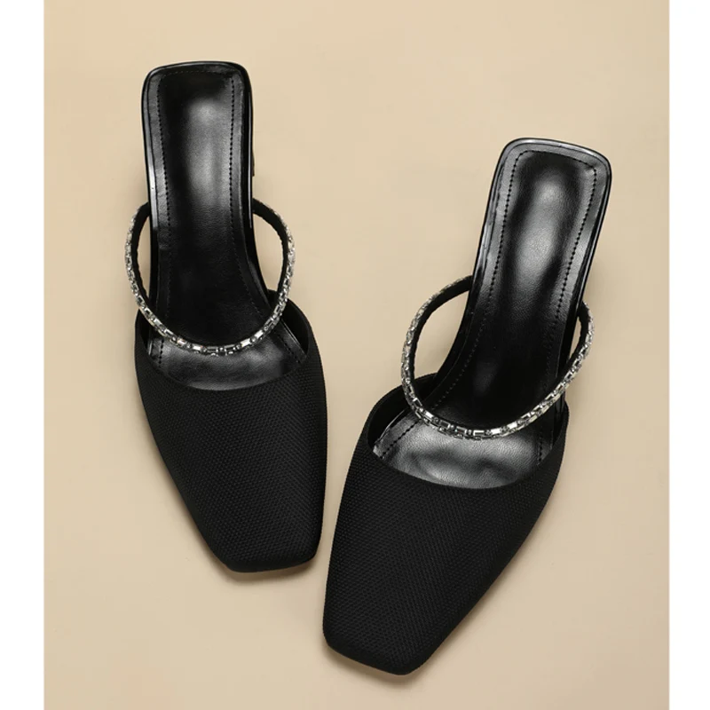Мюли женские на высоком каблуке, повседневные шлепанцы, квадратный носок, сланцы, сандалии, большие размеры, черные, лето 2022