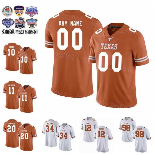 ncaa football texas longhorns college 20 earl campbell jersey 10 vince young 34 ricky williams 11 sam ehlinger 98 brian orakpo 12 earl thoma, Black