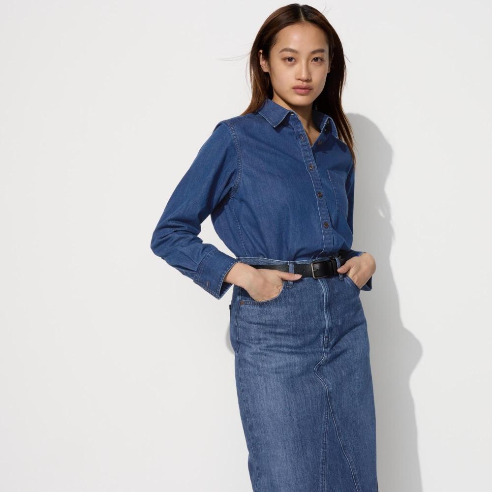 Мягкая джинсовая рубашка Uniqlo с длинным рукавом 62 BLUE/WOMEN S