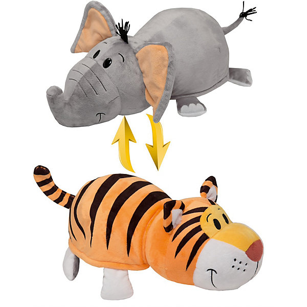 Мягкая игрушка-вывернушка 1toy Тигр - Слон, 40 см, Разноцветный