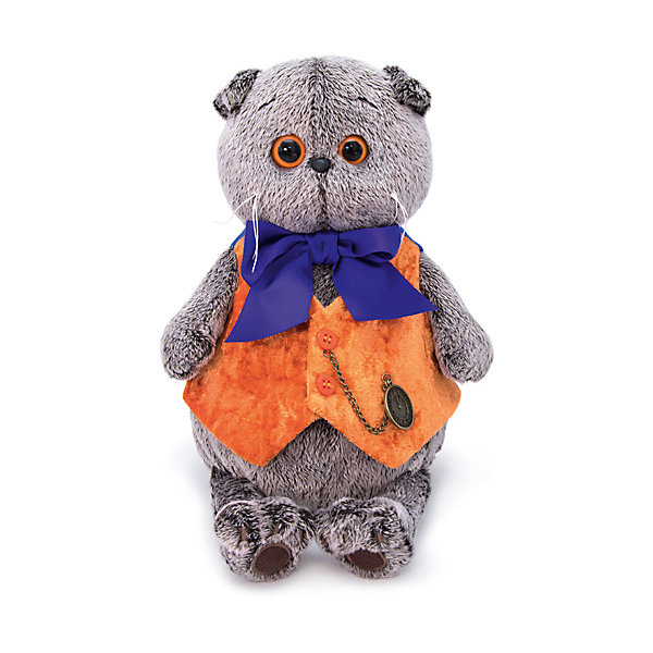 Мягкая игрушка Budi Basa Кот Басик в жилете с часами, 22 см, Коричневый