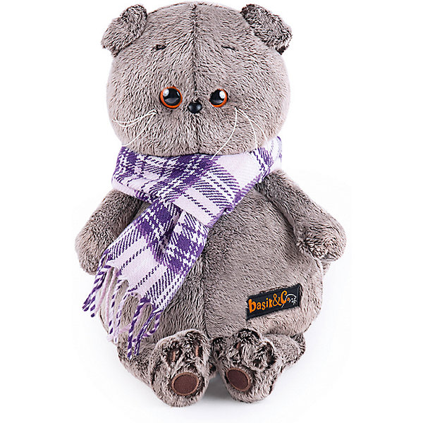 Мягкая игрушка Budi Basa Кот Басик в фиолетовом шарфе, 30 см, Коричневый, Мягкая игрушка Budi Basa Кот Басик в фиолетовом шарфе, 30 см