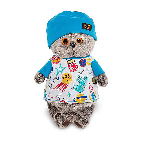 Мягкая игрушка Budi Basa Кот Басик в футболке космос и в шапочке, 19 см, Серый