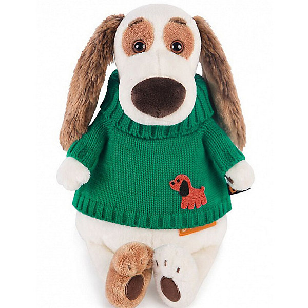 Мягкая игрушка Budi Basa Собака Бартоломей в зеленом свитере, 33 см, Бежевый