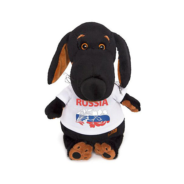 Мягкая игрушка Budi Basa Собака Ваксон в футболке с принтом "Россия", 29 см, Черный, Мягкая игрушка Budi Basa Собака Ваксон в футболке с принтом "Россия", 29 см