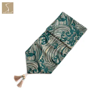 Abstract Art Ocean Water Waves Multi color Green Table Runner with Tassel