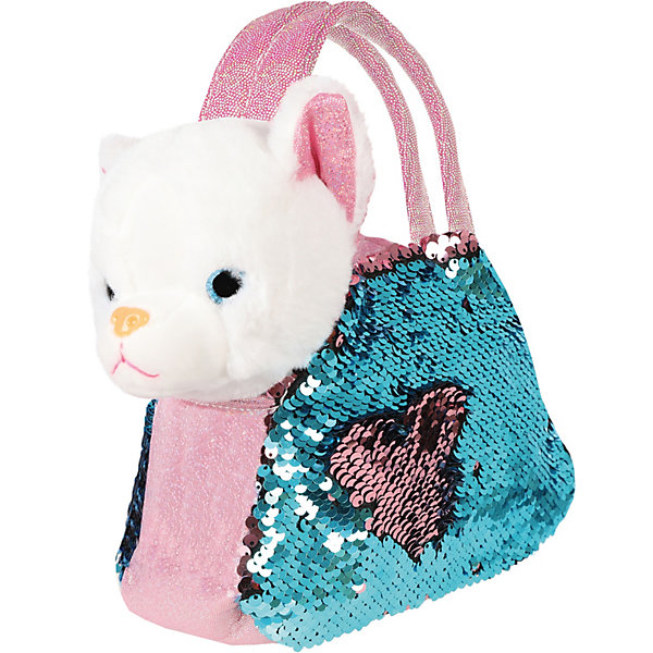 Мягкая игрушка Fluffy Family "Котенок в сумочке с пайетками", 19 см, бело-розовая, Розовый/белый, Мягкая игрушка Fluffy Family "Котенок в сумочке с пайетками", 19 см, бело-розовая