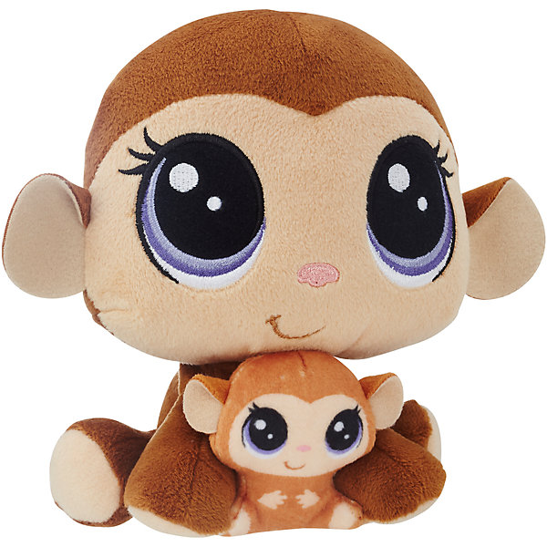 Плюшевая парочка петов Littlest Pet Shop Hasbro выполнена в виде обезьянки и ее малыша. С игрушками можно играть вместе или по отдельности. Малыш помещается между лапок мамы. Игрушки приятны на ощупь, надежно прошиты и отлично держат