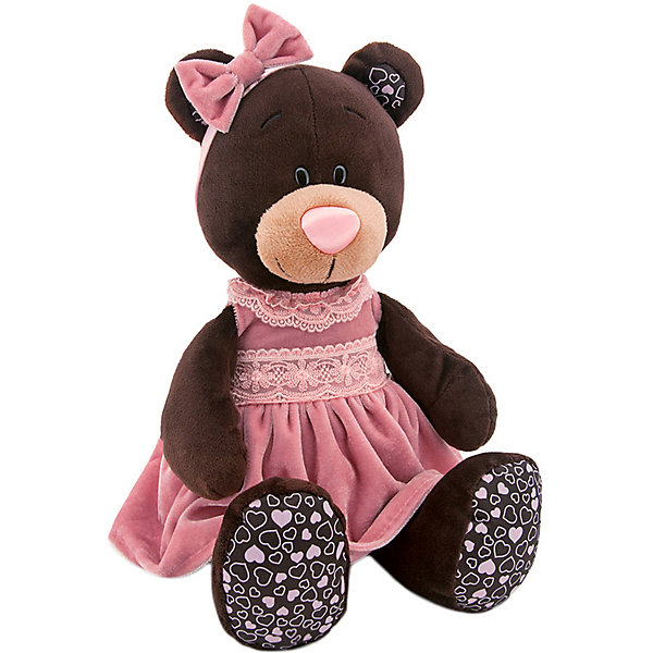 Мягкая игрушка Orange Choco & Milk Мишка Milk сидячая в розовом бархатном платье, 30 см, Коричневый