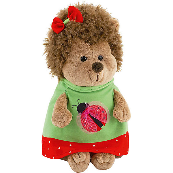 Мягкая игрушка сделана в виде милой ежинки. Одета в красивое стильное платье с изображением насекомого. Образ дополняет бантик на голове. При изготовлении использовали качественные и безопасные материалы.