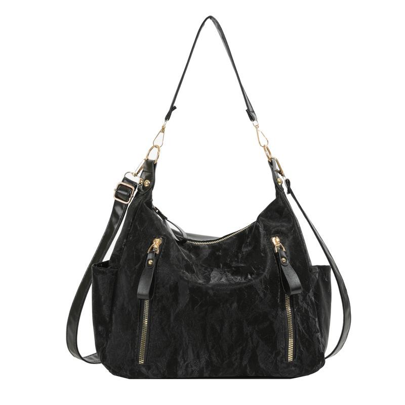 Мягкая кожаная большая модная сумка через плечо женская новинка 2024 года женская сумка корейская версия универсальная сумка-мессенджер темпераментная сумка чёрный