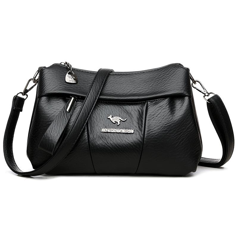 Мягкая кожаная многослойная сумка через плечо для пожилых людей большой емкости для мам среднего возраста чёрный