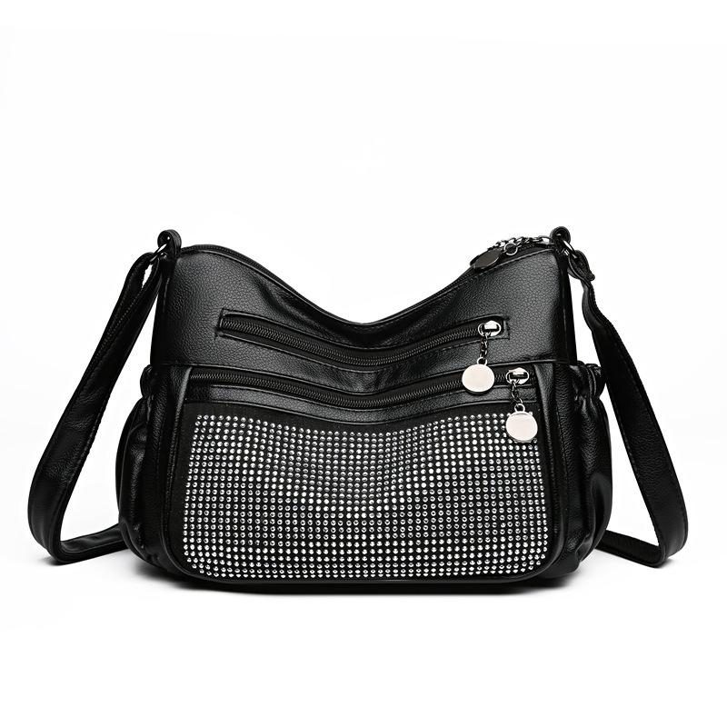 Мягкая кожаная сумка для мамы, женская сумка через плечо, многослойная сумка с бриллиантовой сумкой для мобильного телефона 9611-2