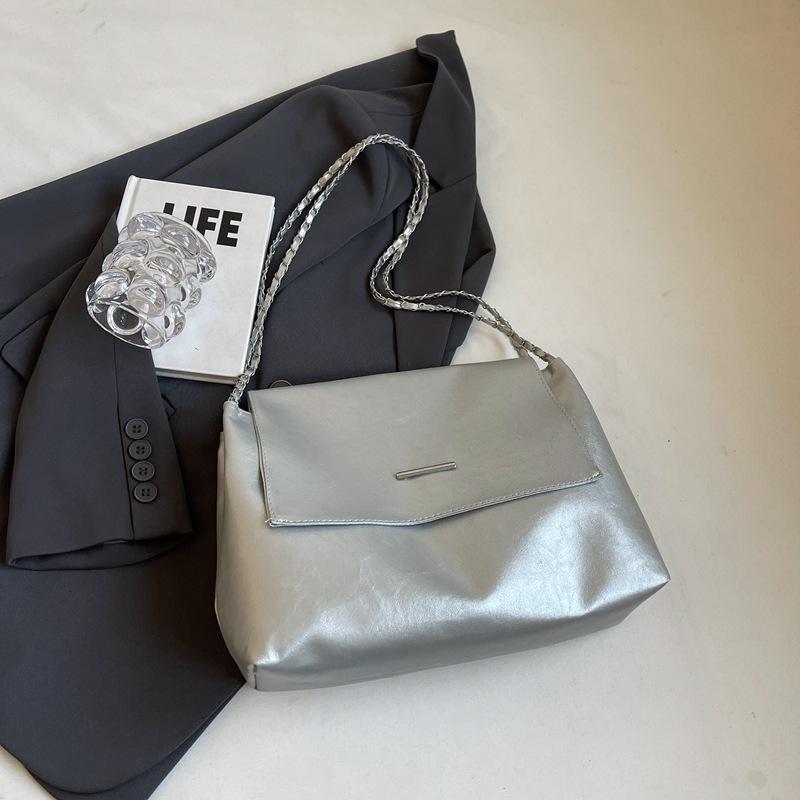 Мягкая кожаная сумка на цепочке большой емкости женская 2025 весенняя универсальная сумка через плечо женская сумка tide серебряный