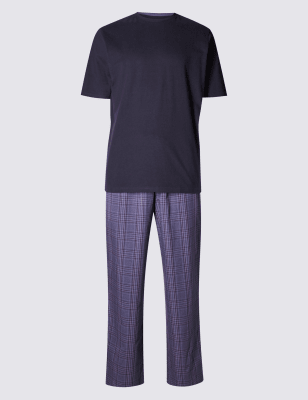 Мягкая пижама из чистого хлопка: однотонная футболка и брюки в виндзорскую клетку