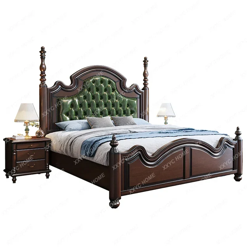 Мягкая сумка-кровать из твердой древесины, роскошная двойная Роскошная 1,8 м вилла, Главная спальня, Высококачественная кожа