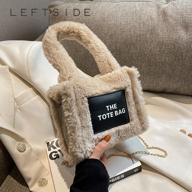 Мягкая сумка-тоут из искусственного меха для женщин, зима 2022, меховые плюшевые сумки через плечо, дизайнерские маленькие сумки с цепочкой и ручками, кошельки с надписью
