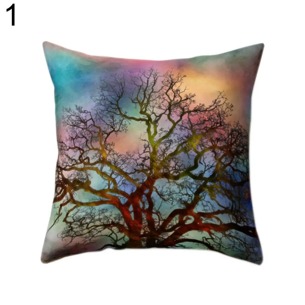 Мягкая удобная квадратная подушка с разноцветным принтом дерева чехлы на подушки для дома, декоративная подушка для дома, офиса, автомобиля...