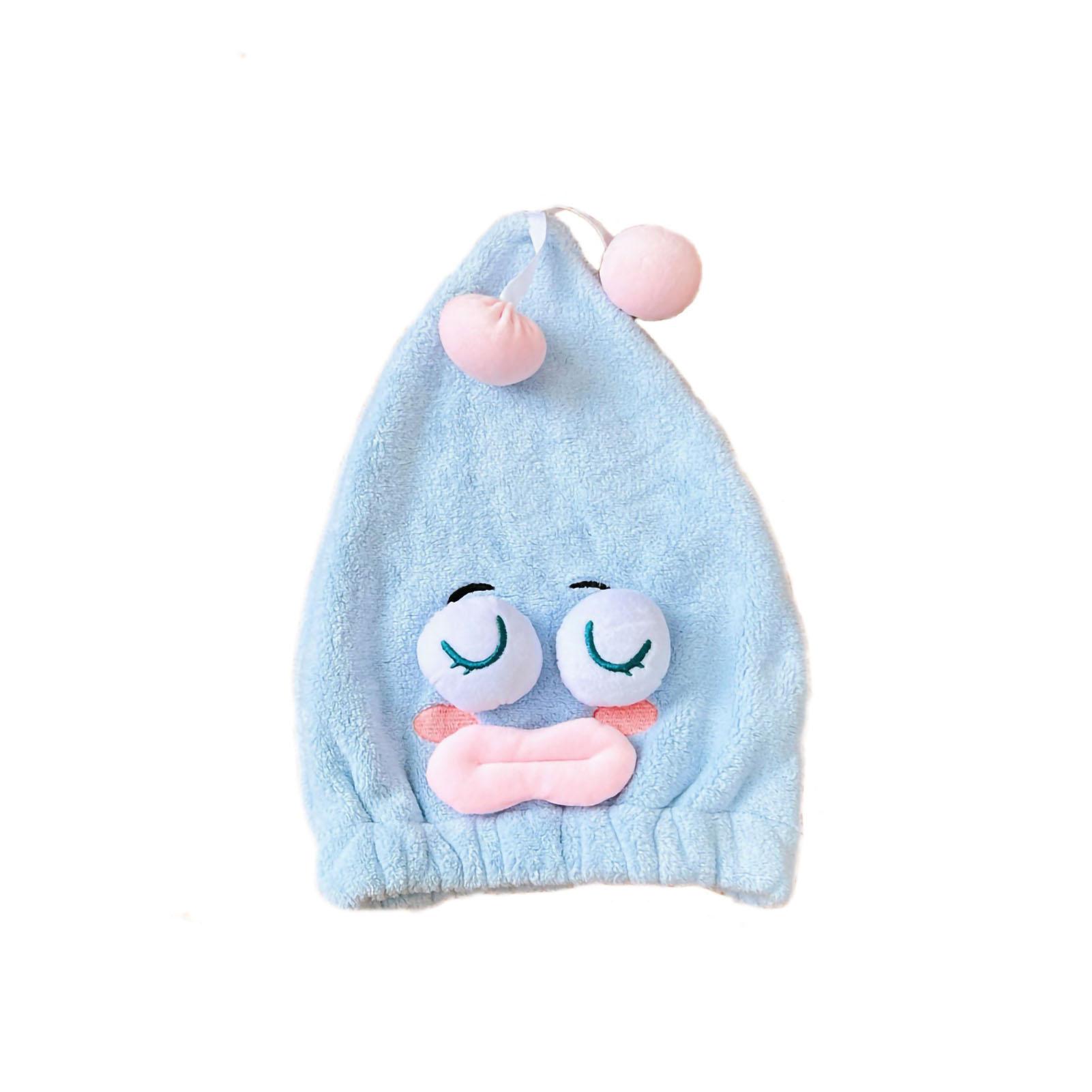 Мягкая эластичная шапочка для волос, уменьшающая пушистость, симпатичная, с большими глазами, для сушки волос, для душа, пляжа синий