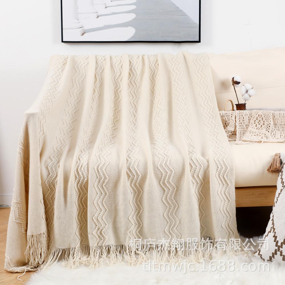 Мягкие вязаные пледы для дивана/дивана, декоративное легкое тканое вязаное одеяло в стиле бохо, уютное и теплое вязаное крючком одеяло для осеннего фермерского дома 150*230CM(tassels) бежевый