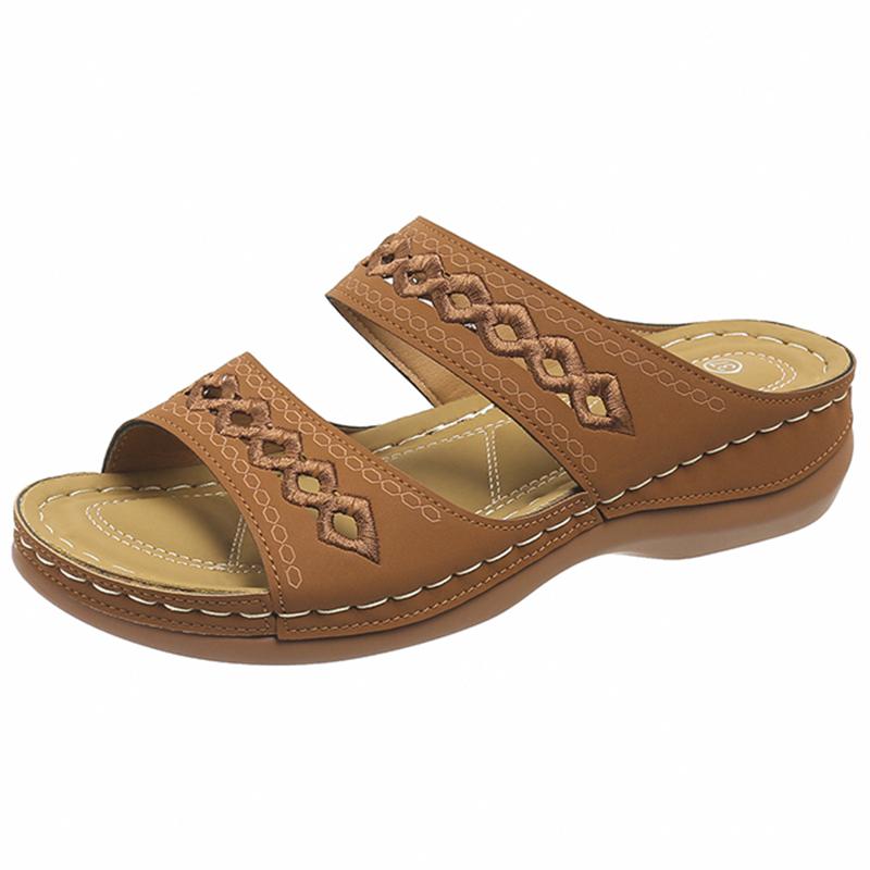 Мягкие женские тапочки на платформе, летние, с открытым носком, на толстой подошве, нескользящие, пляжные туфли, размер плюс 44, повседневные шлепанцы на среднем каблуке 44 коричневый
