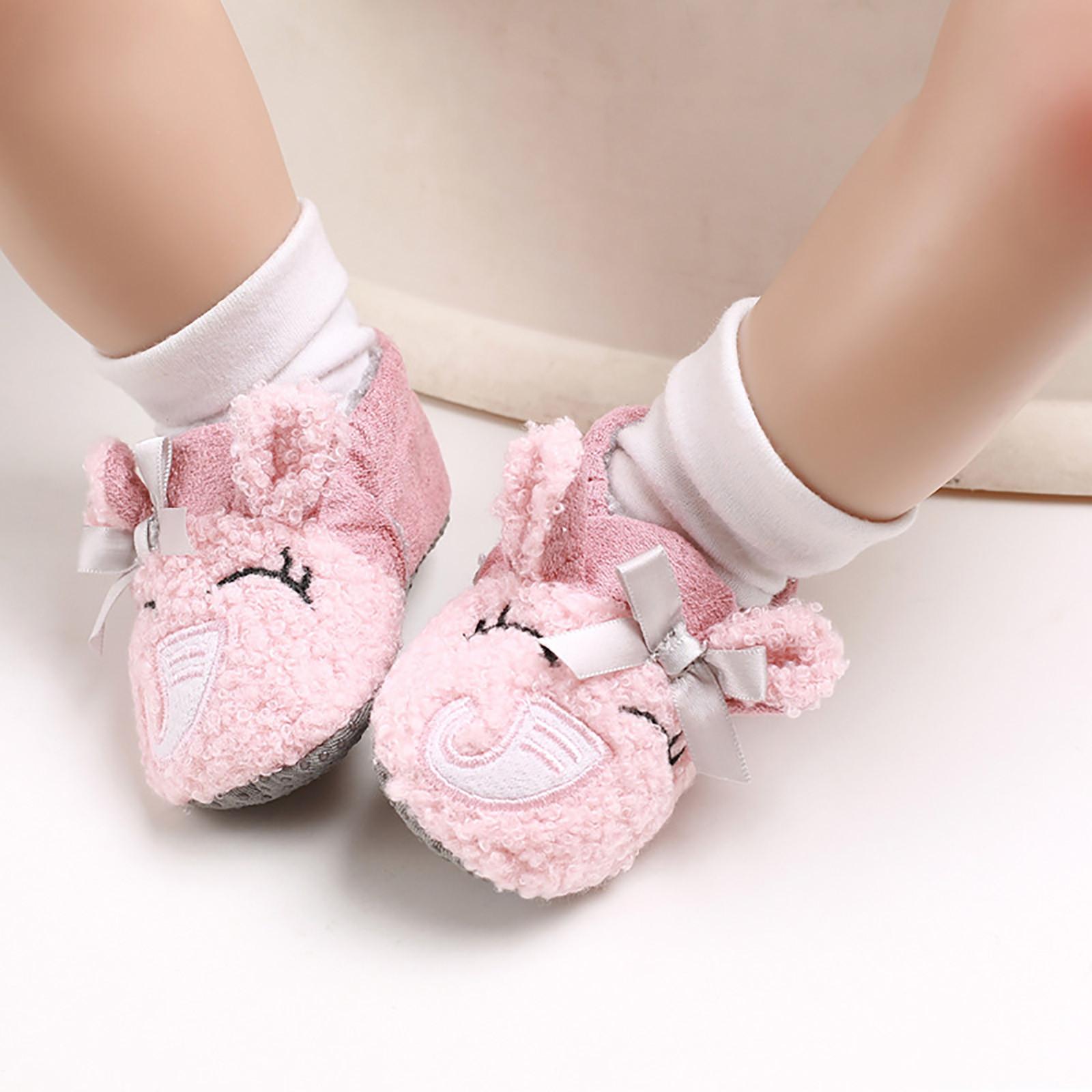 Мягкие плюшевые тапочки для маленьких мальчиков и девочек, теплая зимняя домашняя обувь для малышей с героями мультфильмов 2/12 розовый