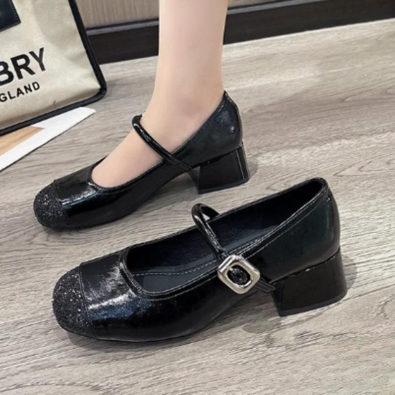 Мягкие туфли женские 2024 женская обувь с круглым носком неглубокий носок повседневные кроссовки новое платье летние ретро пряжка ремешок Мэри Джейн леи 35 чёрный
