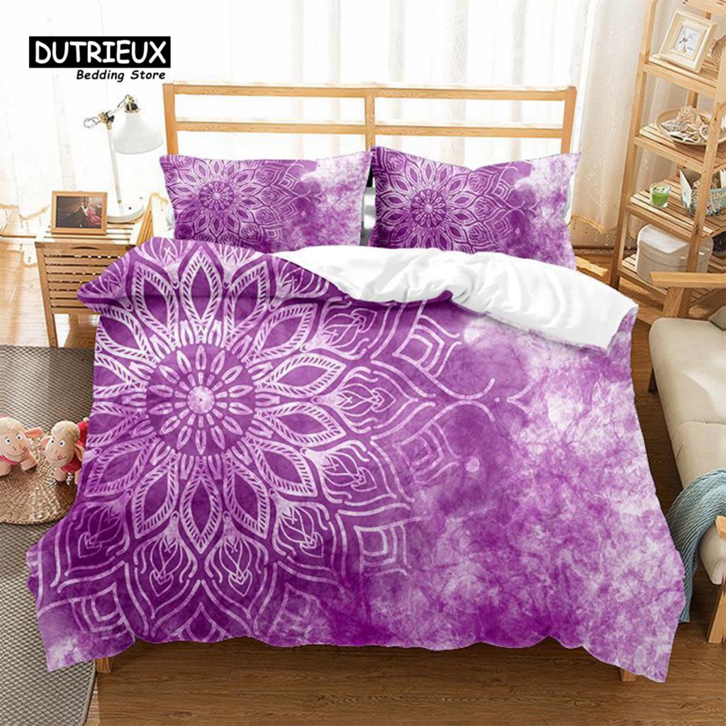 Мягкий красочный комплект постельного белья с мандалой, богемный микрофибра, цветочный 3D-принт, пододеяльник с наволочками для детей и взрослых, декор спальни EU single(135x200cm)