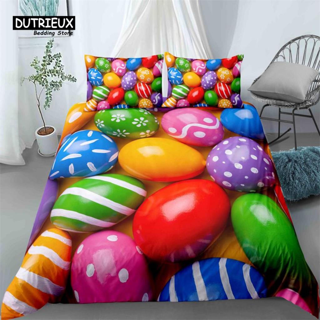 Мягкий пододеяльник с принтом пасхальных яиц и мультяшным кроликом для малышей, комплект постельного белья Twin King Queen Size, микрофибровый пододеяльник EU single(135x200cm)